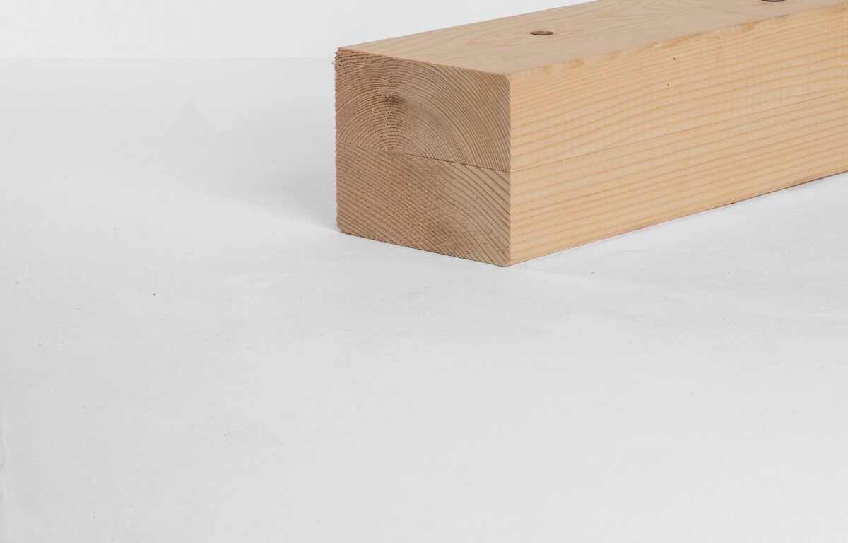 Fichten-Lamellenholz, Einschnitt markfrei, künstlich getrocknet auf 12% (+/-3%) Holzfeuchte, keilgezinkt, aus zwei Lamellen verleimt, 4-seitig winklig gehobelt und / oder gefast.